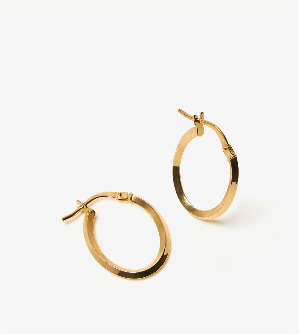 Specchio Hoops are a reinvention of the classic hoop. The hoop earrings feature a contemporary elegance of mirrored-edges with a high-polished shine. The result of a careful craftsmanship, they are designed in two styles: Small and Oval. Crafted in 14k yellow gold, they fasten with a bayonet clasp for maximum comfort and security, allowing you to wear them all day. Needless to say, an Essential in your jewellery box.
