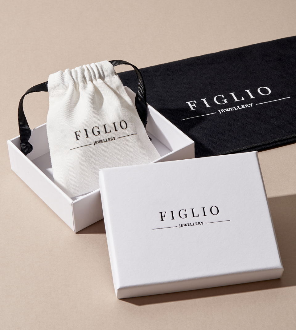 • Branded box and herringbone pouch